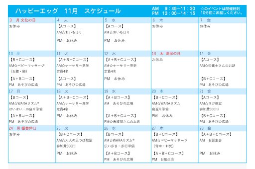 27日午後と28日午前は11月生まれのお友達のお誕生会です。身長と体重が測定できますのでお誕生月でないお子様もご参加ください。
