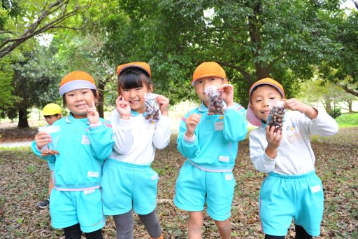 その後、牛久運動公園に行ってどんぐり拾いをした後お弁当を食べたました。
