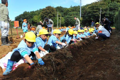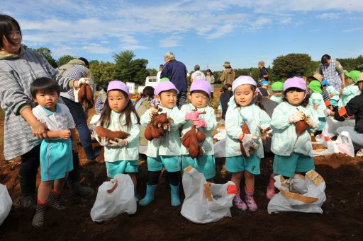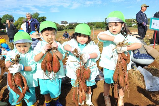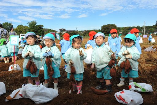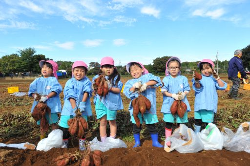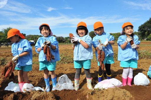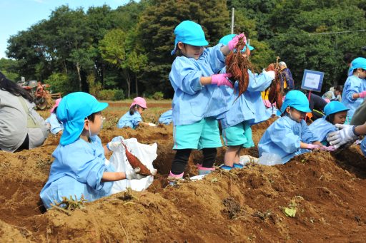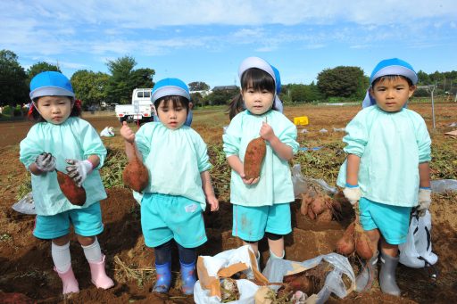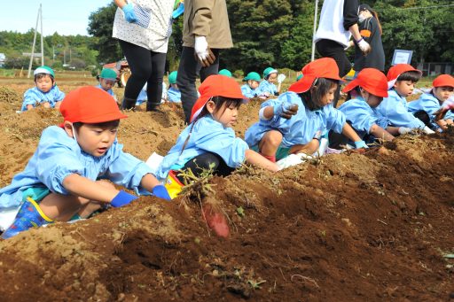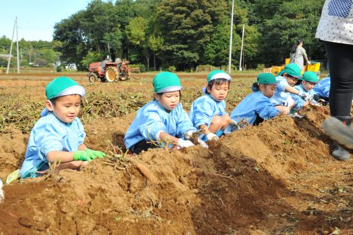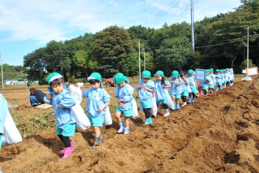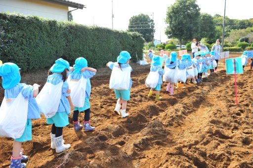 ナーサリーと満3歳児クラス・年中組・年少組・年長組の順番で各学年ごとにおいも掘りに行きました。