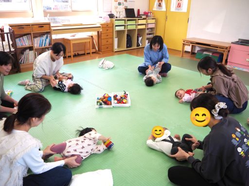 10月30日はWARAリズム®︎寝返り準備を行いました。4組の親子が参加してくださいました。初めてWARAリズムに参加してくださった方が多かったのですが、みんな楽しく体操をしていました。お家でも是非行ってみてくださいね。