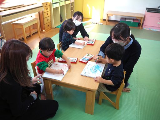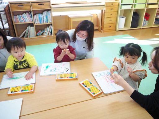 こんにちは!子育て支援「ハッピーエッグ」です。 12月4日、5日に幼稚園遊びを行いました。 4日6名、5日7名の親子が参加してくださいました。 みんなで椅子に座ってお名前を呼んでもらったり、体操をして楽しく過ごしました。 12月の活動は、お絵描きをして、クリスマスツリーを作りました。 椅子の片付け方や、クレヨンの準備の仕方、みんなと一緒に始めるために待つことの大切さなどお話ししました。 さぁ、みんなで作ったクリスマスツリーを飾ってサンタさんをお迎えしましょう! メリークリスマス🎄![]()