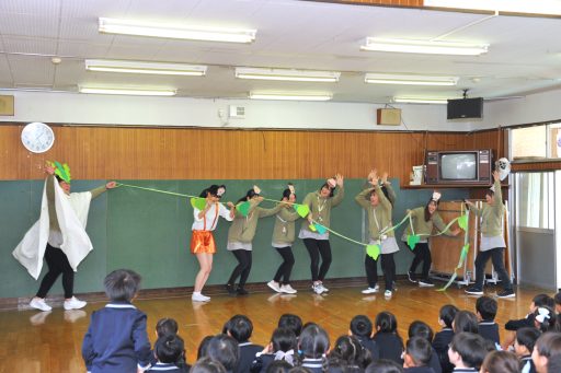 3 / 1 1 _ 卒園を祝う会 2026/03/11 令和8年3月11日(水)本日、卒園を祝う会を行いました。先生から「すっぱいシュークリームを食べた先生は!」「ちびまる子ちゃん版おおきなかぶ」のプレゼントがあり、とても、楽しい時間を過ごしました。